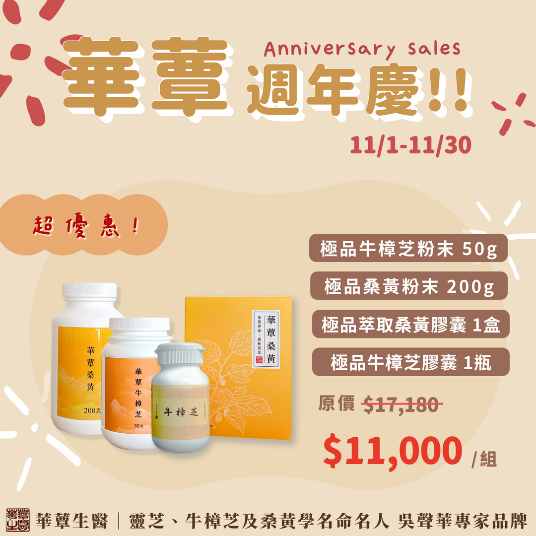 《華蕈週年慶特惠》極品桑黃粉末+極品牛樟芝粉末+桑黃膠囊1盒+牛樟芝膠囊1瓶